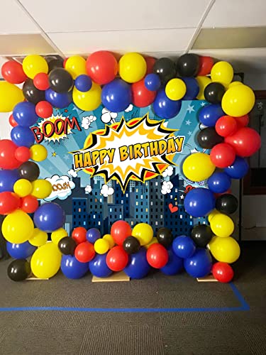 BINQOO 7x5ft Super City Fotografia sullo sfondo Sfondo felice della festa del papà Baby Shower Sfondo Bambini Festa di compleanno Decorazione Photo Booth Puntelli
