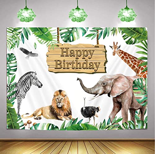 BINQOO 2,1x1,5 m Animale Selvaggio Bambino Doccia Sfondo Bambini Ragazzo Neonato Compleanno Partito Forniture Acquerello Foglie Verdi Sfondo Giungla Leone Bosco