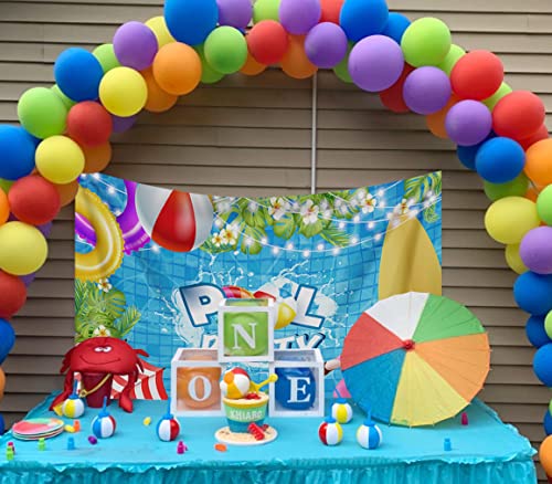 BINQOO Sfondo estivo per feste in piscina per bambini, piscina con palma hawaiana, sfondo fotografico da 2,1 x 1,5 m, baby shower per bambini e famiglie con servizio fotografico