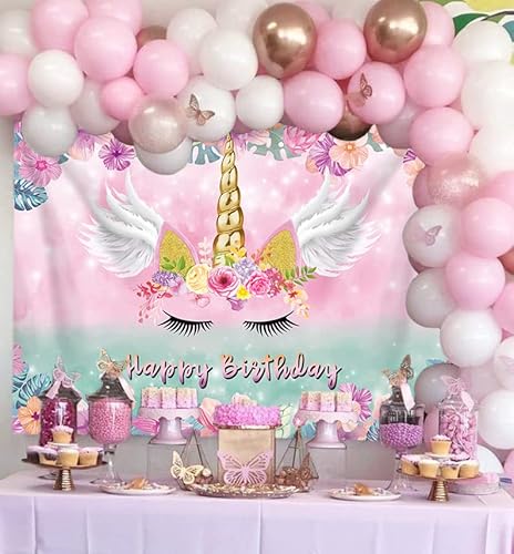 BINQOO 2,1 x 1,5 m unicorno sfondo floreale rosa Giltter Bokeh sfondo foto ragazze principessa festa di compleanno forniture torta tavolo decorazione baby shower