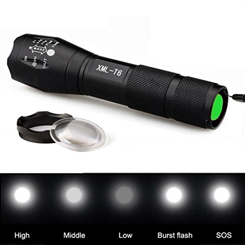 Binwo Super Bright 2000 lumen portatile Mini Torcia LED CREE, Zoom con messa a fuoco regolabile, 5 modalità, uno strumento affidabile per escursionismo, ciclismo, campeggio e altri sport all' aria aperta (Batterie non incluse)