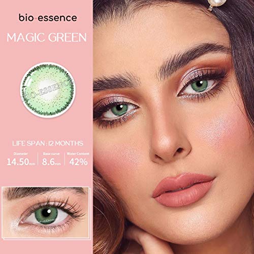 BIO-ESSENCE Lenti a contatto morbide in idrogel 1 paio di lenti a contatto verde senza prescrizione. Durata: 12 mesi. Con scatola e scatola (VERDE MAGICO)