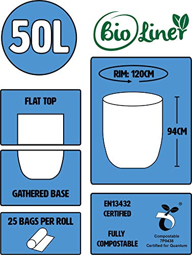 Biobag, 100 sacchetti per spazzatura biodegradabili da 50 litri, conformi alla norma EN 13432, guida al compostaggio inclusa (lingua italiana non garantita)