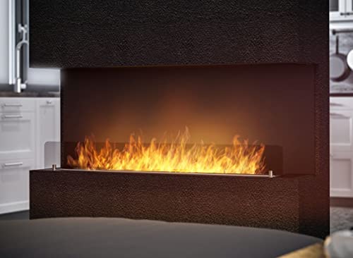 Questo caminetto è progettato per essere montato in una nicchia predisposta. Grazie all'utilizzo di acciaio speciale rinforzato è stato possibile ottenere la forma più minimalista utilizzando solo uno strato di acciaio.