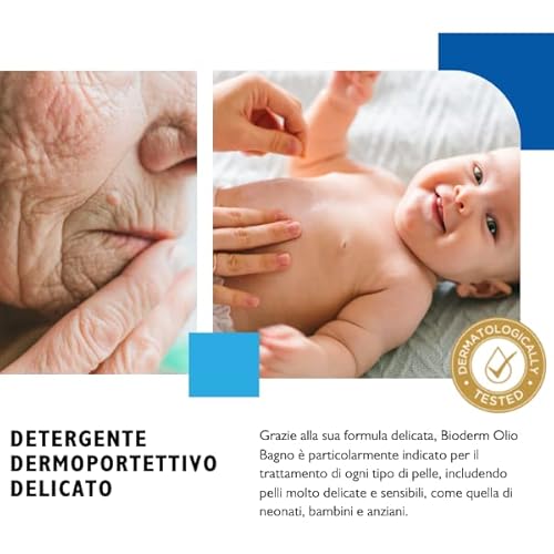 ✅ DETERGENTE DERMOPORTETTIVO DELICATO: Grazie alla sua formula delicata, Bioderm Olio Bagno è particolarmente indicato per il trattamento di ogni tipo di pelle, includendo pelli molto delicate e sensibili, come quella di neonati, bambini e anziani
