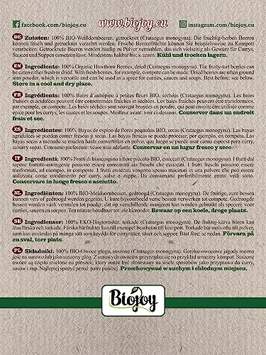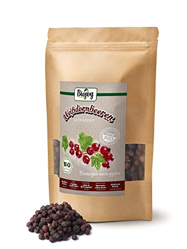 Biojoy Frutti di biancospino a fiore piccolo BIO (500 gr), essiccati e interi, per preparare il tè e infusione (Crataegus monogyna)