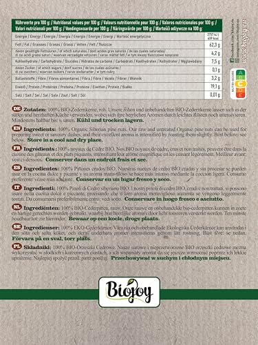Biojoy Pinoli di Cedro biologiche, crude e non salate, chicchi interi (500 gr)