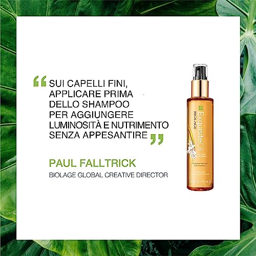 Biolage | Olio Trattamento Protettivo, Nutre e Illumina Tutti i Tipi di Capelli, Per Morbidezza e Lucentezza Istantanea, Arricchito con Olio di Moringa, Exquisite Oil, 100 ml