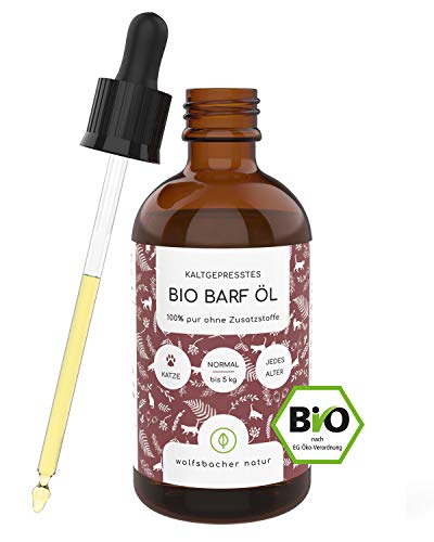 Olio di barf biologico per gatti - 100 ml Omega 3 6 9 olio da coltivazione biologica controllata - Con vitamina E da 6 oli diversi, DE-ÖKO-060