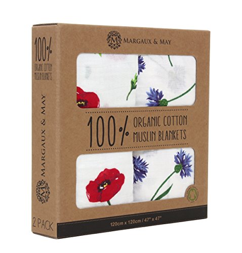 Biologico mussola Swaddle Blanket - Margaux & May - x grande fasciare coperte - papaveri e fiori di mais