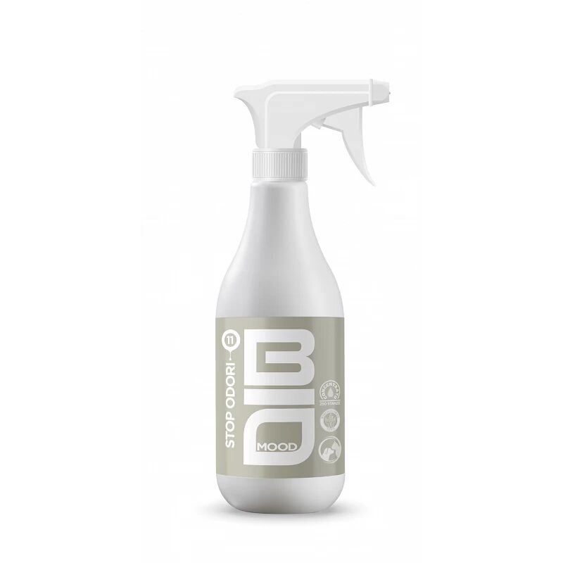 BIOMOOD DEO STOP ODORI Biomood DEO E STOP ODORI neutralizza gli odori e, permette di mantenere gli ambienti profumati per lungo tempo. Ideale per profumare e neutralizzare odori di ambienti frequentati da Animali Domestici come Cani e Gatti. Dove: Può essere applicato su divani, tappeti, poltrone, cucce, tende, auto. Ideale per profumare e neutralizzare l'odore di fumo di fritture e cibo in generale in casa e in alberghi. Dosi: 2 spruzzate per stanza con una confezione si Profumano in maniera intensa e prolungata fino a 250 stanze. NESSUN TEST ESEGUITO SU ANIMALI