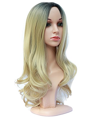 Bionda Ombre Radici nere Parrucche Parrucca piena per capelli sintetici morbidi per donna Parrucca da metà naturale dall'aspetto naturale 22 pollici