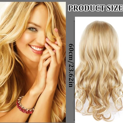 Bionde Ondulate Lunghe Con Frangi, 60cm Parrucche Lunghe Bionde, Parrucca Donna Bionda, Parrucca Sintetica Ondulata Lunga, Per Feste Quotidiane, Cosplay, Feste, Halloween