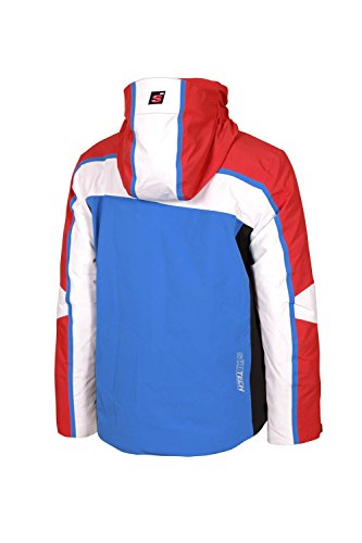 Cuciture sigillate. Cappuccio fisso, due tasche esterne con cerniere impermeabili. Una tasca sulla manica per skipass. Un tasca interna con cerniera