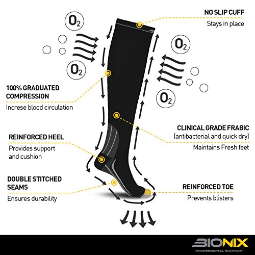 Bionix calze a compressione per uomini e donne 30-40 mmHg - migliore compressione graduata contro periostite, vene varicose, gamba e dolori.Ottime per corsa, maternità, gravidanza, infermieri, lavoro, voli, viaggi: migliorano la circolazione sanguigna e riducono la fatica.