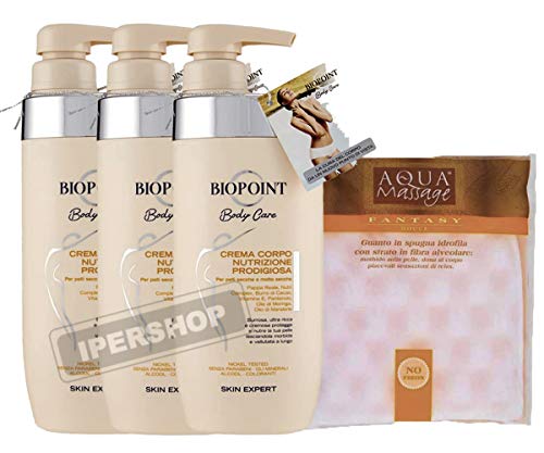 Biopoint set 3 pezzi crema corpo nutrizione prodigiosa 500 ml + guanto spugna idrofila