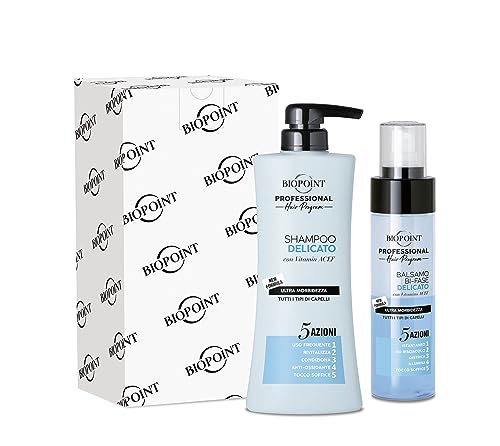 Biopoint Professional Hair Program - Kit DELICATO per Lavaggi Frequenti, contiene Shampoo 400ml + Balsamo Instantaneo Bi-fase SENZA RISCIACQUO 200ml, Illumina e Districa i capelli velocemente