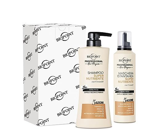 Biopoint Professional Hair Program - Kit SUPER NUTRIENTE, contiene Shampoo 400ml + Mousse Maschera Istantanea Senza Risciacquo 250ml, dona Vitalità e Bellezza ai capelli secchi e spenti