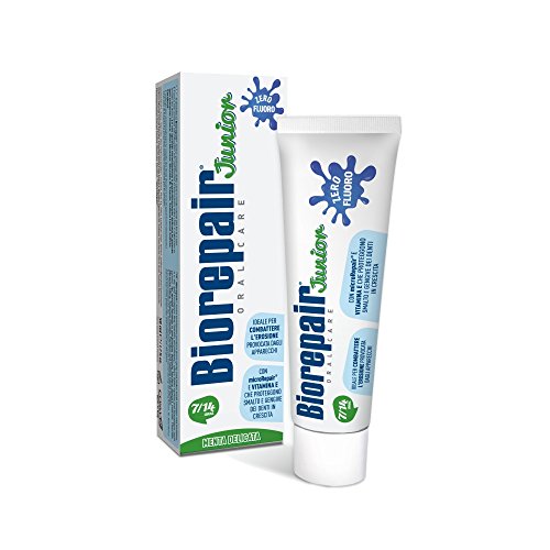 Biorepair, Dentifricio Junior 6-12 anni, 6 confezioni da 75 ml, Dentifricio per Bambini senza Fluoro, con Vitamina E, Antiossidante, per Gengive Sane, Rinfrescante Gusto Menta