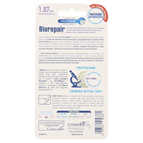 Biorepair 5 Scovolini Interdentali Antibatterici, Delicati con Denti e Gengive, con Microrepair per una Pulizia Dentale Profonda, Formato Large Conico, Passaggio Interdentale 1.07 mm