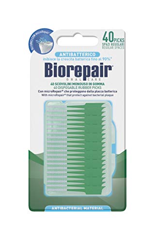 Biorepair, 40 Scovolini Monouso in Gomma, 6x40 Scovolini Dentali, Formato Regular, con MicroRepair, Proteggono dalla Placca Batterica, Inibiscono la Crescita Batterica Fino al 90%, Aroma Menta Fresca