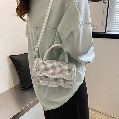 BIOSA Borsa a tracolla alla moda con strass, da donna, da sera, in pelle, da viaggio, per cene, feste, da donna, a spalla, bianco, 19.5CM*11.5CM*5CM