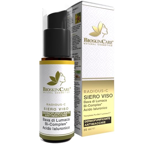 BIOSKINCARE Siero Viso Vitamina C AntiMacchia con Acido Ialuronico e Bava di Lumaca, Siero Antirughe, Anti-Macchie ed Imperfezioni, Schiarente Macchie Scure in 1 Settimana 30ml