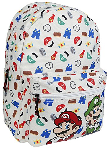 Bioworld NINTENDO Super Mario Bros. and Luigi with All-over Icons Pattern Print Backpack Zaino Casual, 42 cm, 15 liters, Bianco (White)