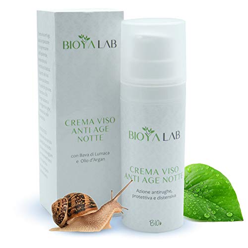 Bioya Lab Crema Viso Bava Di Lumaca Antirughe Donna E Uomo Idratante Con Acido Ialuronico Ed Olio D'argan Giorno e Notte 50 Milliliter Biologica
