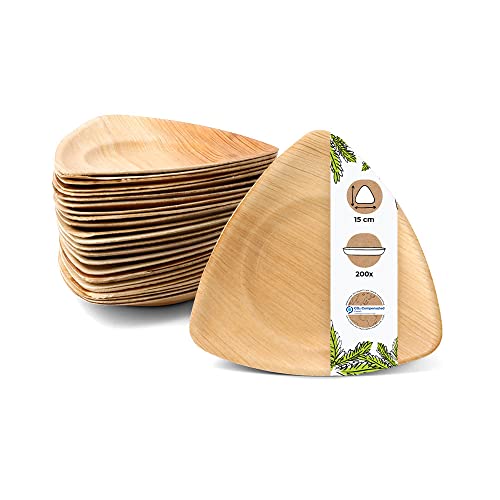 BIOZOYG Palmware - Piatti di Foglia di Palma Sostenibili I Piatti Monouso triangolari 15 cm I Piatti per Feste 100% compostabili I Stoviglie di Foglia biodegradabili I Stoviglie Monouso 200 pezzi