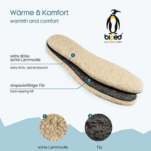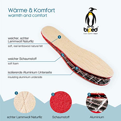 Biped 3 paia di solette inseribili invernali set polare - inserti di scarpe riscaldanti con vera lana d'agnello - solette comfort z2730 (44)