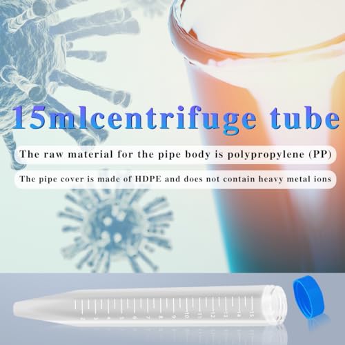 Bipee Plastic Centrifuge Tubes, 15ml, Conical Bottom, Graduated Marks, Blue Screw Cap, Pack of 100pcs