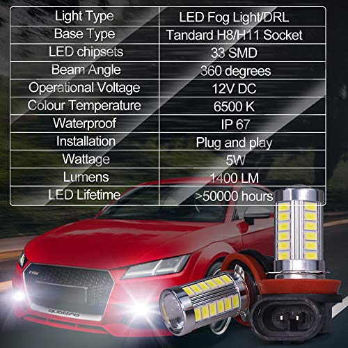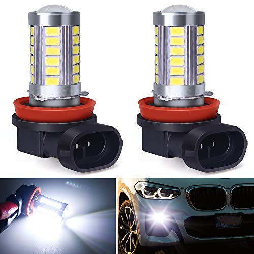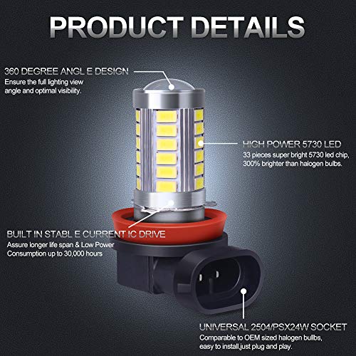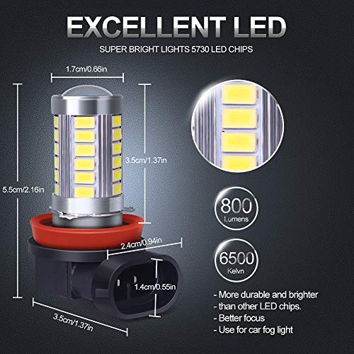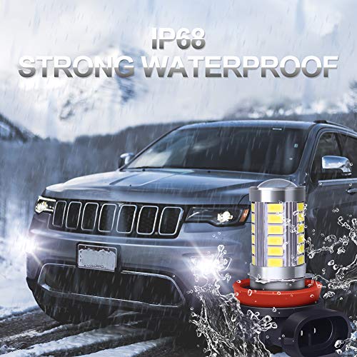 √【Fendinebbia a LED H8 H9 H11】-- Ogni lampadina ha 33 chip led 3014 ad alta potenza, 6000K xeno bianco, 2800 lumen di uscita (1400 lms per lampadina) estremamente luminosi, molto più luminosi delle lampadine alogene.