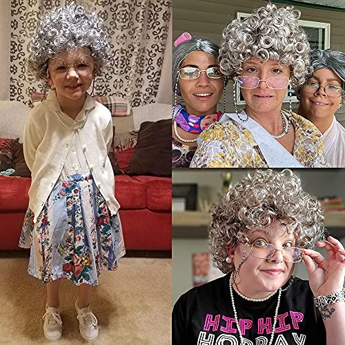 Materiali di qualità: la parrucca della nonna è realizzata in fibra sintetica di qualità. Gli occhiali della nonna o della nonna sono d'oro con la lente. Questi gioielli di perle possono essere bigiotteria ma sembrano e si sentono proprio come quelli reali.