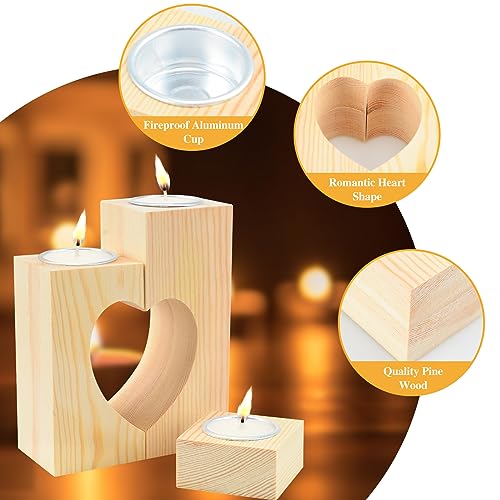 BIQIQI Portacandele in Legno a Forma di Cuore, Set di 3 Portacandele Decorativi in Pino Boutique con Candela a LED, Decorazione Candela Romantica, Regalo per Festival (Bianco)