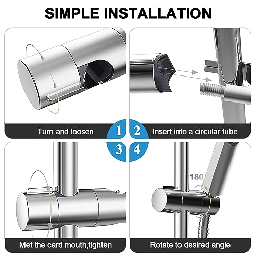 【Installazione semplice】: la staffa per soffione doccia è facile da installare e può essere installata senza forare. Allentare la manopola, fissare la staffa alla barra di scorrimento e serrare.