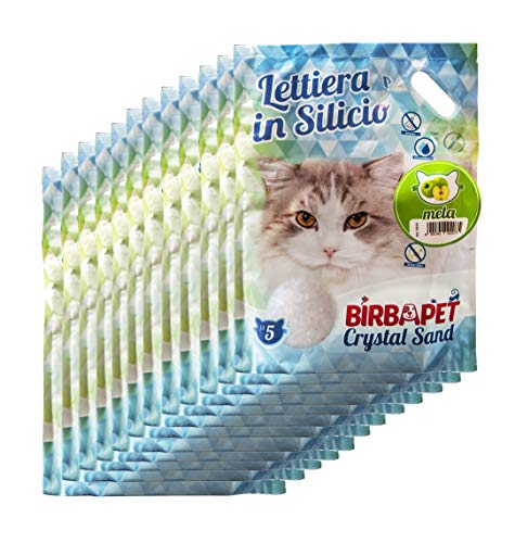 BIRBAPET Crystal Sand - Offerta LETTIERA per Gatti in SILICIO LT. 60 in n. 12 COMODE Buste da 5 LT PROFUMATA alla Mela