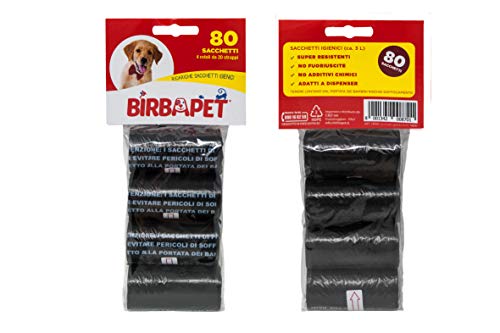 Birbapet - 320 Sacchetti Neri per Cane igienici per bisogni ed escrementi dei Cani, 320 bustine da 4 Card con 4 Rotoli all'interno.