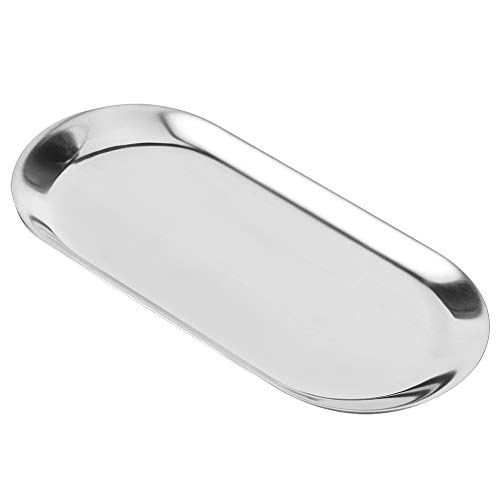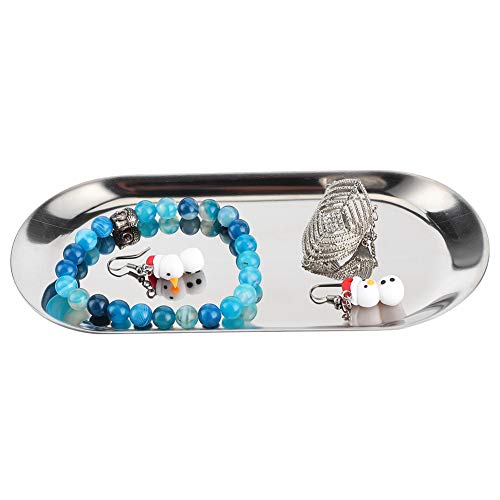 Birdlantern Vassoio per Gioielli, 5 Pezzi Vassoio per Asciugamani a Forma Ovale in Acciaio Inossidabile Cosmetici Vassoio portaoggetti per Gioielli Piatto per Piatti Organizer(Argento)