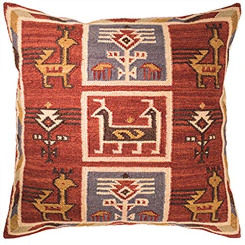 Birdsong Kilim - Federa per cuscino, commercio equo e solidale, realizzata a mano su telai a mano con 80/20 lana/cotone e coloranti naturali, Lana Cotone, Multicolore, 75 x 75