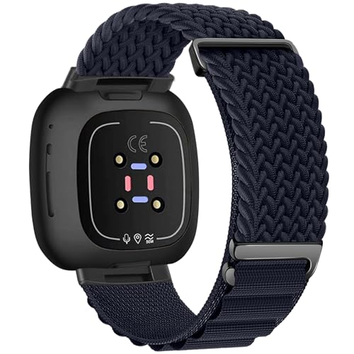 Materiale in Nylon & Design innovativo-- Fitbit Versa 4 cinturino è realizzato in tessuto di nylon, leggero e traspirante, comodo da indossare, nessun odore particolare e innocuo, morbidi e leggeri, traspiranti. Questo sportivo cinturino loop utilizza un nuovo design innovativo ad uncino a G, che consente di regolare rapidamente e facilmente la lunghezza del cinturino, l'uncino a G resistente alla corrosione in metallo si scorre facilmente negli occhielli e fornisce una vestibilità sicura.