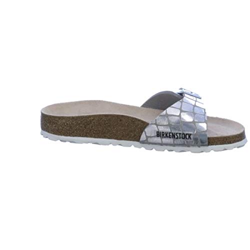 Birkenstock Mules Madrid Microfibre Gator Gleam Silver, Sandali Donna, 38 EU Stretta