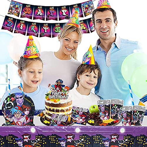 67 pcs Birthday Decorations Set, Compleanno per Bambini Stoviglie Animati Feste Decorazioni Forniture Piatti Tazze Tovaglia Striscioni Articoli per Feste