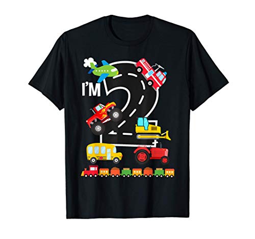 Perfect 2nd Birthday trucks plane train fire truck I'm 2 transportation vehicles trains cars airplane gift ideas for Toddler boys turning 2. Perfect gift for the little boy toddler who loves things that go. 2nd bday two year old birthday boy.