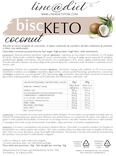 BiscKETO Line@Diet | Snack CHETOGENICI ricchi di PROTEINE | 7 monoporzioni di biscotti KETO al COCCO ricoperti di CIOCCOLATO