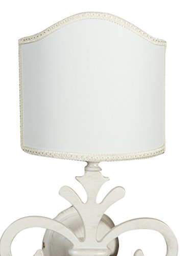 Biscottini Applique da Parete Interno Vintage 21x36x18 cm | Applique in Ottone Invecchiato Bianco | Applique Vintage Paralume in Tessuto