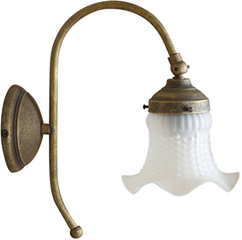 Biscottini Applique da parete interno vintage 23x13x30 cm | Applique in ottone invecchiato | Applique vintage paralume in vetro