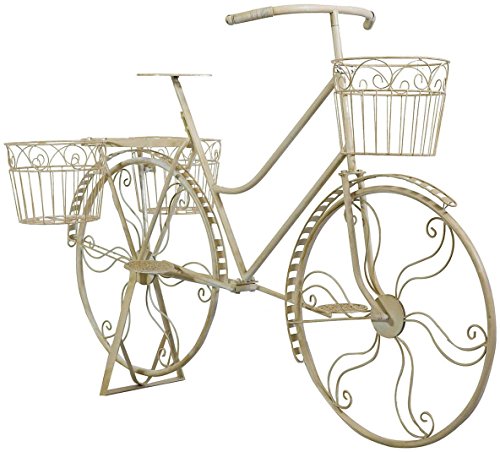 Biscottini Bicicletta portafiori in ferro battuto finitura bianca anticata L150xPR70xH104 cm