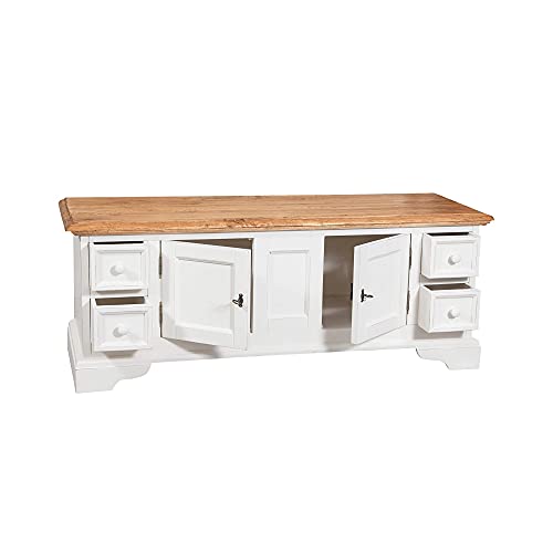 Biscottini Mobile TV Bianco Shabby 150 x 56 x 51 cm Made in Italy | Mobili Porta TV Legno massello di Tiglio | Mobile TV Soggiorno | Mobili TV