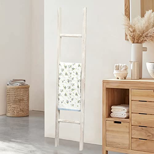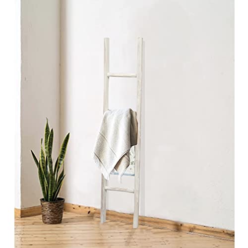 Biscottini Scala in legno finitura bianca anticata L33xPR5,5xH150 cm Made in Italy - Scaletta - Scala decorativa per camera da letto, Bagno e Soggiorno-Portasciugamani-Bagno Decorazione-Stendibiancheria-Scaletta Scaffale